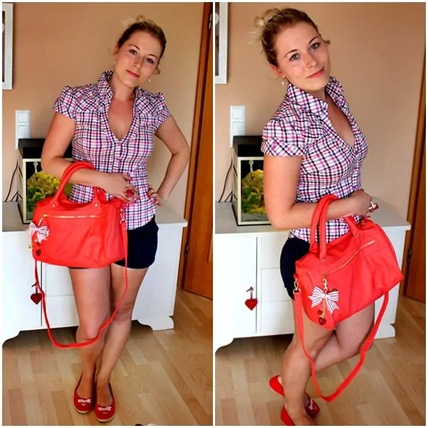 Outfit: Shorts, Bluse – Tally Weijl | Schuhe, Tasche – Primark | Ring – H&M