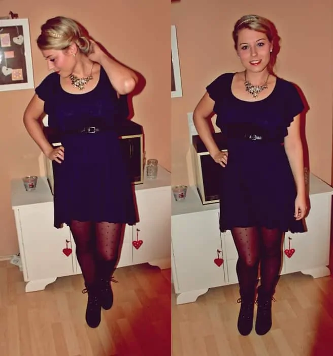 Outfit: Dress – H&M Mama | Necklace – HotHoops | LaceUp Booties – Deichmann