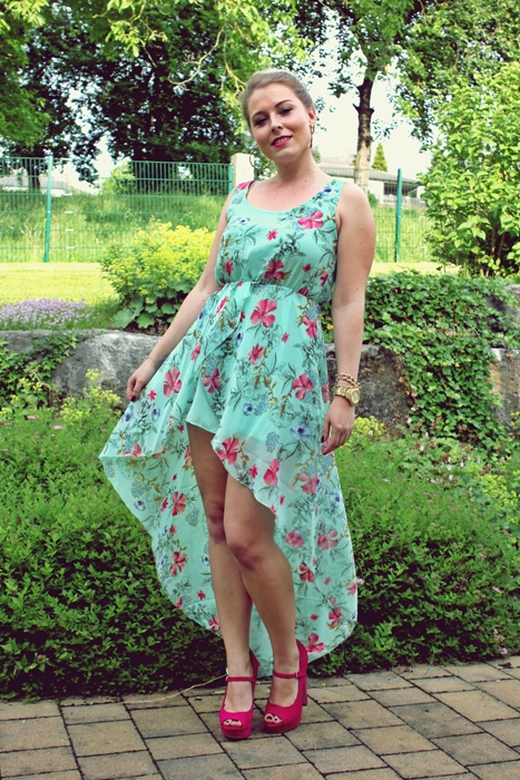 ich persönlich finde high low kleider genial – aber das blümchenmuster finde ich ein wenig too much bei einem kleid, das schon durch die form auffällt 🙂 nichts destotrotz siehst du toll aus 🙂