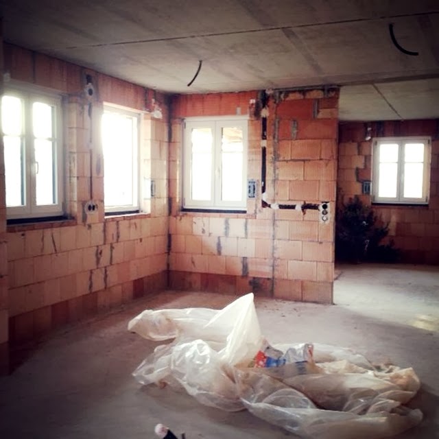 Und so siehts auf der gegenüberliegenden Seite aus. Der Kamin ist auch schon verputzt. Boden kommt auch noch drauf.