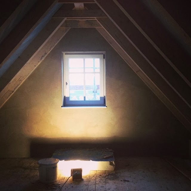 Am Dachboden haben wir die Giebel verputzt und die Fensterbänke gesetzt.