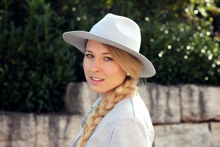 Der Hut steht dir wirklich total gut! Ein graues Modell fehlt mir auch noch in meiner Sammlung, muss wohl bei Asos reinschauen..:) Und ich mag es total gerne, wenn du einen seitlichen Zopf trägst, das steht dir so gut!