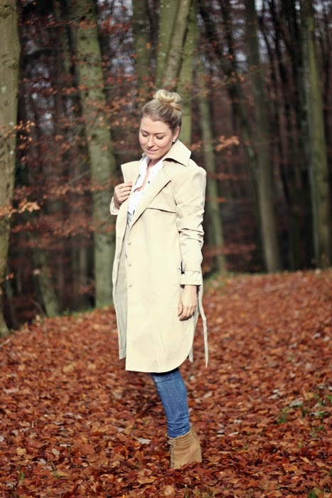 Nein, ich war nicht undercover, auf einer geheimen Mission im Wald unterwegs. Aber mir hat der rote Blätterwald einfach so gut gefallen, dass ich hier ein paar Outfitfotos, in meinem neuen Trenchcoat machen wollte. Und dann kam auch noch die Sonne hinter den Wolken hervor. Es hätte nicht besser laufen können. So einen Trenchcoat wollte ich schon immer haben und ich muss sagen, die Suche nach dem perfekten Trench ist wirklich schwer. Dieser hier kommt meiner Vorstellung schon sehr nahe, aber der perfekte ist er für mich auch nochnicht! Trotzdem gefällt er mir von Schnitt und Material total gut und ist auch angenehm zu tragen. Habt Ihr schon den perfekten Trenchcoat gefunden? Da es jetzt ja etwas kälter geworden ist, tausche ich ihn aber lieber in einen schönen warmen Parka ein!