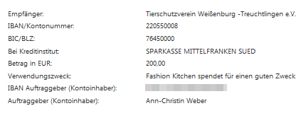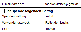 Die Wahl fiel mir wirklich unglaublich schwer, aber ich glaube, gut gewählt zu haben. Und ich hoffe, die Organisationen freuen sich über die kleine Finanzspritze. Ich habe nun die 1.000 € gesplittet und an verschiedene gemeinnützige Organisationen gespendet und so hoffentlich vielen Menschen und Tieren ein wenig geholfen. Nein, eigentlich habt IHR geholfen, denn IHR habt zum Großteil dieses Geld, damals für den Markenrechtsstreit gespendet. Und dafür möchte ich mich nochmal herzlich bedanken! DANKE! Eure Unterstützung ist und war großartig und nun tun wir alle etwas Gutes und das ist ein wirklich unglaublich tolles Gefühl! Es haben nicht nur Privatleute, sondern auch einige Firmen etwas gegeben und so versucht, mich und meinen Blog zu unterstützen! Es kamen damals unglaubliche 923,88 € zusammen und ich lege die restlichen 76,12 € drauf, damit wir auf glatte 1.000 € kommen.
