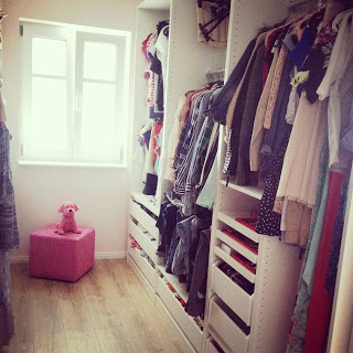 Ein kleiner Tipp im Ankleidezimmer. Am besten nicht zu viel Sonne rein lassen, sonst bleichen die Klamotten aus… 🙂