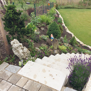 Die Böschung und unsere kleine Trockensteinmauer wird auch immer grüner und es wächst immer mehr ein. Das kommt alles so nach und nach und in einem Jahr ist bestimmt alles komplett grün. Man kann eigentlich jeden Tag sehen, wie sich etwas verändert, blüht und wächst.
