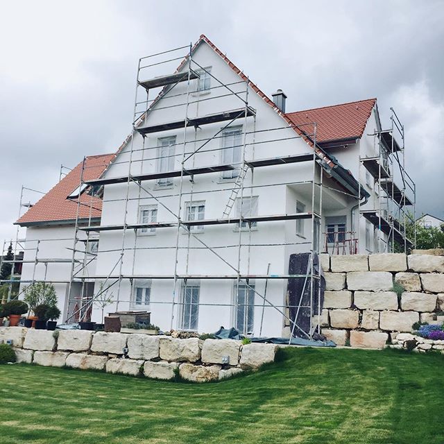 Halleluja! Ich kann es nicht anders sagen, aber endlich haben wir es geschafft und unser Häuschen ist fertig verputzt! Gute 8 Wochen hat die Prozedur jetzt gedauert und wir sind mehr als froh, dass es jetzt – Gott sei Dank – vorbei ist! Es wird zu dem ganzen Verputz Thema noch einen separaten Post und auch ein Video geben, aber wohl erst Ende Juni. Ihr müsst Euch also noch etwas gedulden. Auf jeden Fall sind wir überglücklich, auch dieses Projekt nun endlich abschließen zu können und machen einen großen Haken dran! Könnt Ihr euch noch erinnern, wie es mit den Ziegeln ausgesehen hat? Irgendwie gewöhnt man sich so schnell an die Sachen. Unglaublich oder?