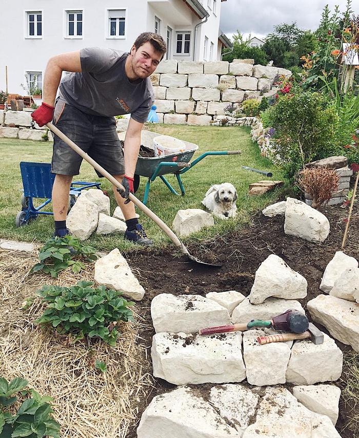 Jetzt nachdem unser Haus verputzt ist, können wir uns einigen kleineren Projekten widmen. Zum Beispiel unserer kleinen Natursteintreppe. Und weil wir gerade so gut dabei waren, haben wir auch noch ein kleines Beet rechts davon angelegt, um so dem Eck einen schönen Abschluss zu geben. Die nächsten Wochen wollen wir dann das Gartentürchen einbauen und den Spanndraht am Gartenzaun richtig spannen. Demnächst gibt es dann auch mal wieder einen richtigen Hausbaupost.