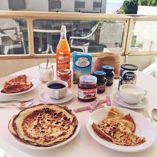 Was wir im Urlaub total zelebrieren ist das Frühstück! Und da Matze ein paar Tage etwas gekränkelt hat, habe ich mich in die Küche gestellt und ihm zum Frühstück die aller leckersten Pfannkuchen gebacken! Es gibt nichts Besseres als Pfannkuchen, egal in welcher Variante! Im Urlaub hatte ich noch eine ziemlich reife Banane, die kam dann kurzerhand auch einfach mit rein und hat den Pfannkuchen noch eine besondere Süße verpasst.