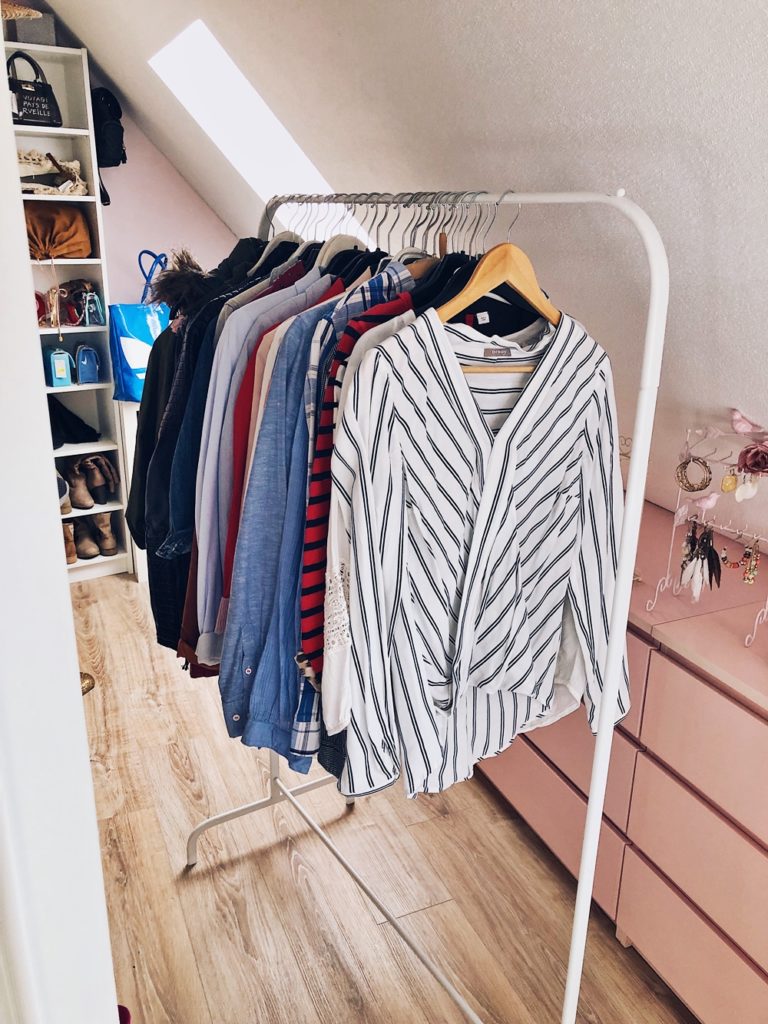 Wenn ich das Bild sehe muss ich den Kopf schütteln. Alles nur hingestellt und nicht wirklich aufgeräumt. Auch der Kleiderständer hat mich schon so lange genervt. Das musste sich einfach ändern. Also habe ich losgelegt.