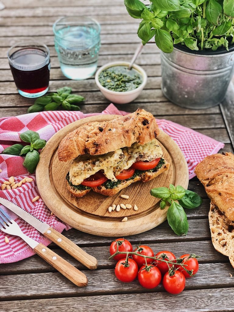 Gerade bei etwas heißeren Temperaturen sind solche selbst zusammengebaute Sandwiches der Hit. Jeder belegt sich sein Brot mit seinen Lieblingszutaten und dann wird gegessen. Außerdem macht es Spaß sein Brot zu belegen und immer neue Varianten auszuprobieren. Mein mediterranes Baguette mit Rucola-Pesto, Tomaten, Hähnchenbrust & Käse solltet Ihr aber auf jeden Fall mal so ausprobieren, denn es ist eine Geschmacksexplosion!
