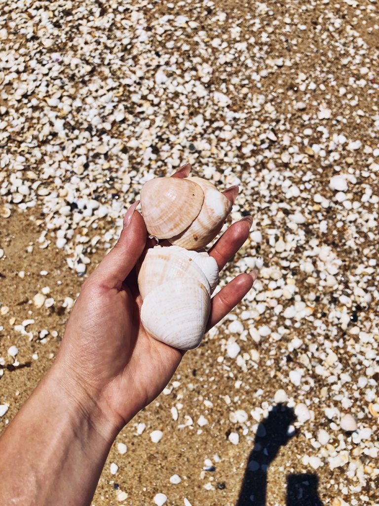 Der ganze Strand war über und über voll mit Muscheln. Sowas hatte ich noch nicht gesehen. Ich sammelte die hübschesten zusammen und nahm sie mit zu meinem Lager. Dort angekommen machte ich eine kleine Brotzeit und sonnte mich. Auch einen kleinen Abstecher ins Wasser machte ich, aber nur bis zum Bauch, denn mir waren die Wellen nicht geheuer und ganz alleine war es mir auch zu gefährlich. Ich hörte Musik, las etwas und als es Abend wurde, packte ich meine Sachen wieder zusammen und fuhr zurück ins Hotel.