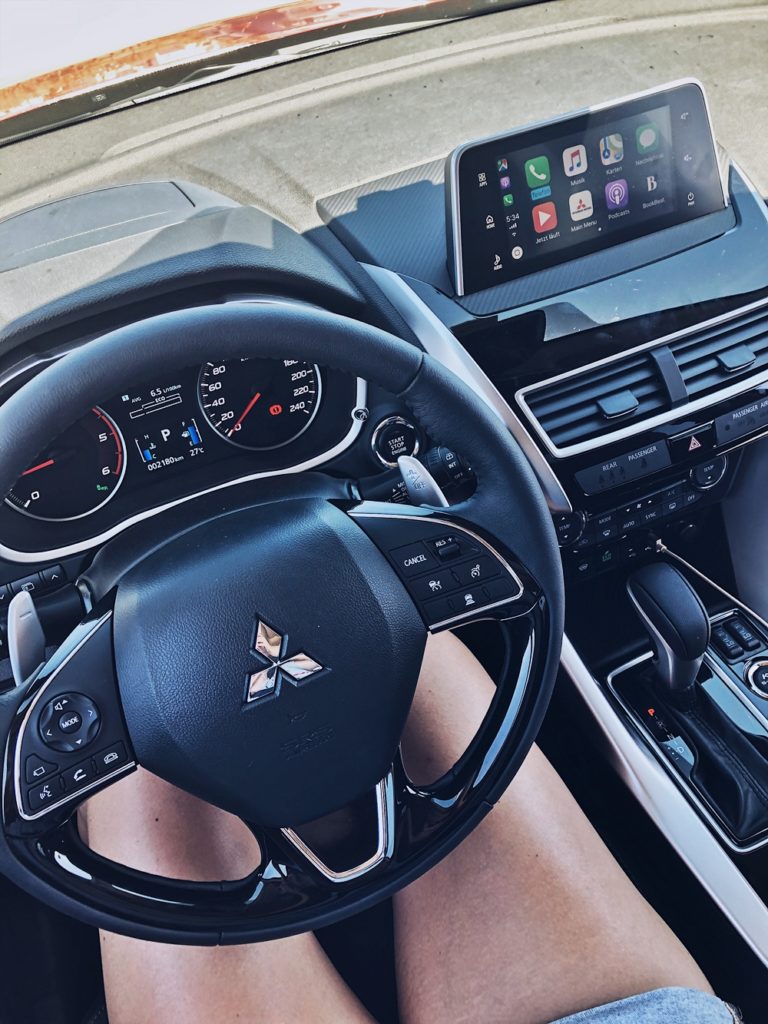 Besonders cool ist, dass man beim Mitsubishi Eclipse Cross, direkt das Smartphone per USB Kabel anschließen kann und so über das Display verschiedene Apps steuern kann. Google Maps, Musik, Nachrichten, Telefon, Podcast, Hörbücher, usw. Man kann also direkt auf Google Maps klicken und seine Route auswählen und das Navi legt los. Noch ein Pluspunkt ist, dass das Handy direkt geladen wird. Auch die sonstige Bedienung ist kinderleicht und intuitiv. Man kommt super schnell zurecht und mir hat das Layout und Design des Cockpits im Auto sofort gefallen.