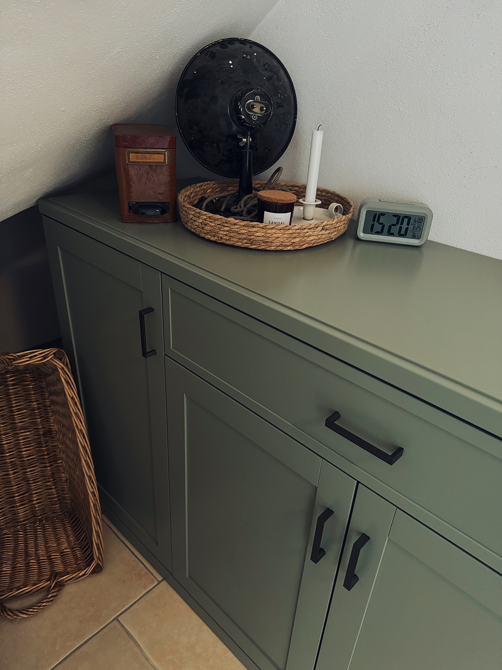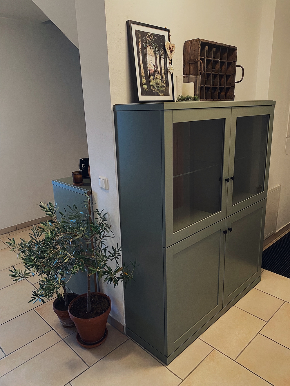 Es war einfach „BOOM“, als ich alles das erste Mal im fertigen Zustand sah! Noch schöner, als ich es mir vorgestellt hatte! Und das Olivgrün war die perfekte Wahl! Ich habe dann sofort alles eingeräumt und hübsch gemacht. Jeder der mich besucht, ist einfach begeistert von den Möbeln und der Farbe! Alle sagen, es wertet den Raum ungemein auf und macht alles viel freundlicher. Man fühlt sich sofort wohl! Und genau das wollte ich und genau so ist es auch!