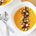 Pikante Möhrensuppe mit knusprigen Bacon & Toast Croutons